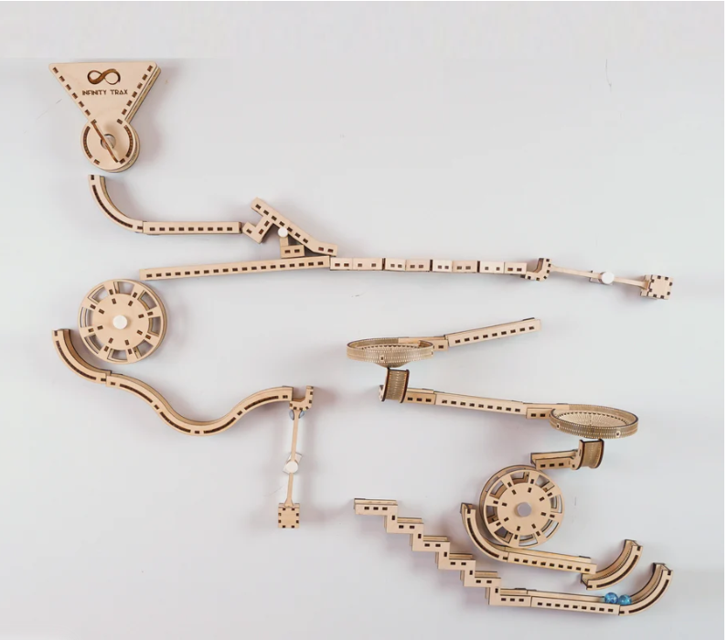Unlock your creativity with the Infinity Trax magnetic wooden modular marble run! This listing provides all the digital files you need to craft your own unique marble run, complete with vector files in both DXF and SVG formats, as well as STL files for 3D-printed parts.